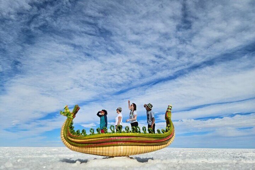 The Salar de Uyuni, one of the main tourist destinations in South America and the largest in the world with more than 12,000 km2 is also one of the most important lithium reserves in the world, this desert was covered 40,000 years ago by Lake Minchin , leaving the high ground with hexagonal shapes of salt, here we will make several stops to take pictures and we will be able to see the little eyes of salt, Monument to the Dakar Raly, Hotel Playa Blanca, square of flags from around the world, then we go to the Island Incahuasi.