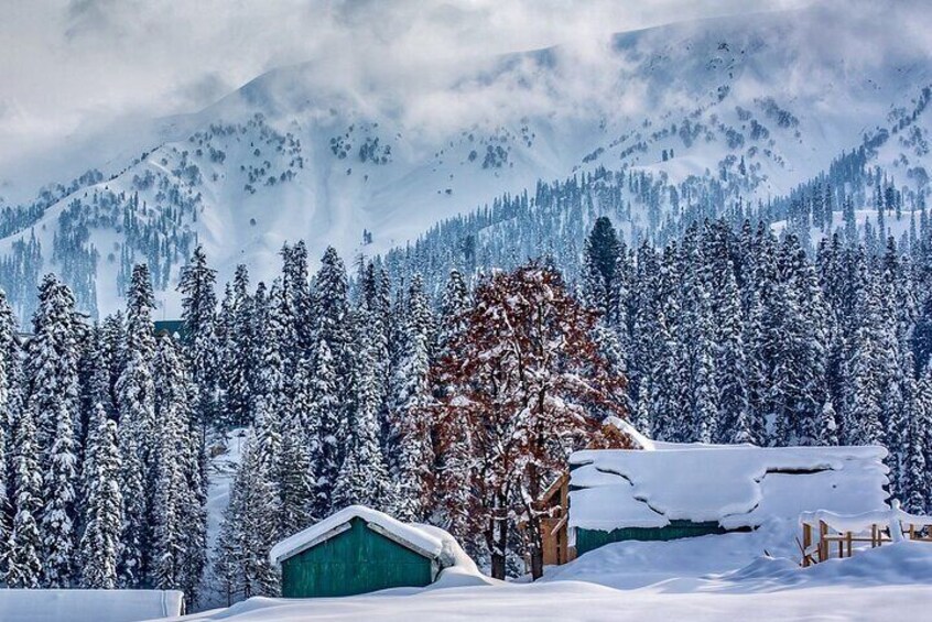 Srinagar to Gulmarg “Meadow of Flowers” Discovered by the Kashmiri romantic poet in the 16th century who was inspired with its grassy slopes covered with wild flowers. In winter Gulmarg looks more beautiful due to heavy snow fall. And turns into India's premier Ski resort in winter. Gulmarg has one of the best ski slopes in the world and highest golf course with 18 holes, In Gulmarg you also can enjoy Gondola Cable Car (Phase 1 Included) offers rides to the upland meadows of Kongdori and beyond to the top of Apharwat range to a height of 14000 ft. for viewing the Himalayan Peaks in summer and for downhill skiing in winter,and overnight stay in Hotel at Srinagar..