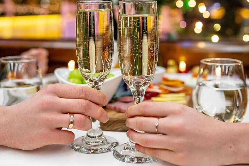 For the ultimate Valentine's celebration, book our exclusive VIP Experience. Enjoy access to the private 2nd deck, with a dedicated bar. Relish a 6-course meal that includes a charcuterie board, organic caviar service, fresh salad, succulent seafood, premium entrées, and indulgent desserts. Enjoy 2 top-shelf alcoholic drinks, along with unlimited non-alcoholic beverages. With only 22 seats available this intimate experience ensures your Valentine's Day will be truly unforgettable.