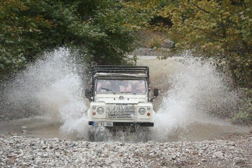 Off-road Adventure & Jeep Water Fights The safari route includes a combination of asphalt roads and forest off-road tracks, offering breathtaking landscapes, dusty paths, and exciting driving experiences. One of the most entertaining parts of the tour is the water fight between the jeeps. Guests can join the fun using water guns, which are available for rent at €5 (optional).
