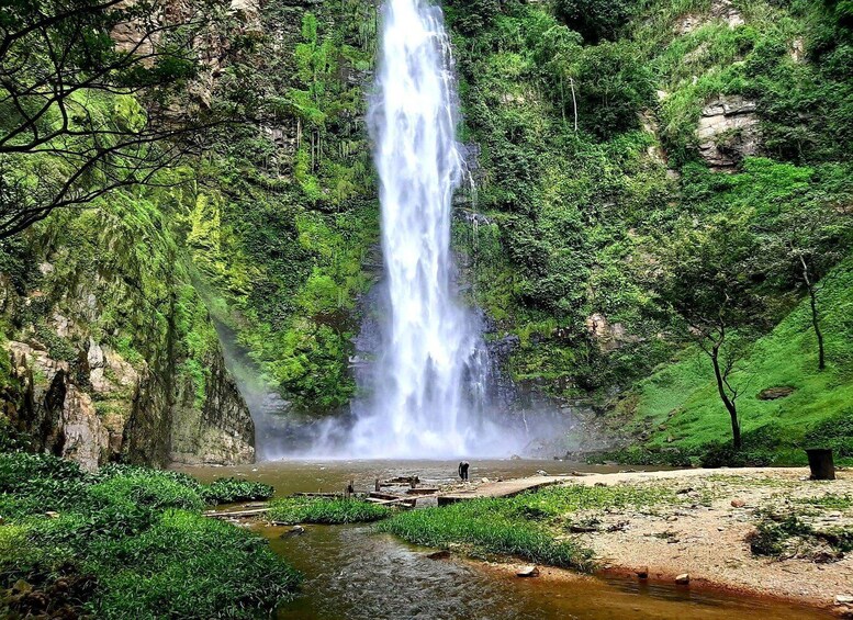 Wli Waterfalls, also known as Agumatsa Falls, is the highest waterfall in Ghana and one of the most popular natural attractions in the country. Located near the village of Wli in the Volta Region, the falls cascade over a series of rock cliffs surrounded by lush greenery. There are two main levels to the waterfall: the lower falls, accessible through a short hike, and the upper falls, which require a more challenging trek. The area is home to diverse flora and fauna, including hundreds of fruit bats that can often be seen around the falls.