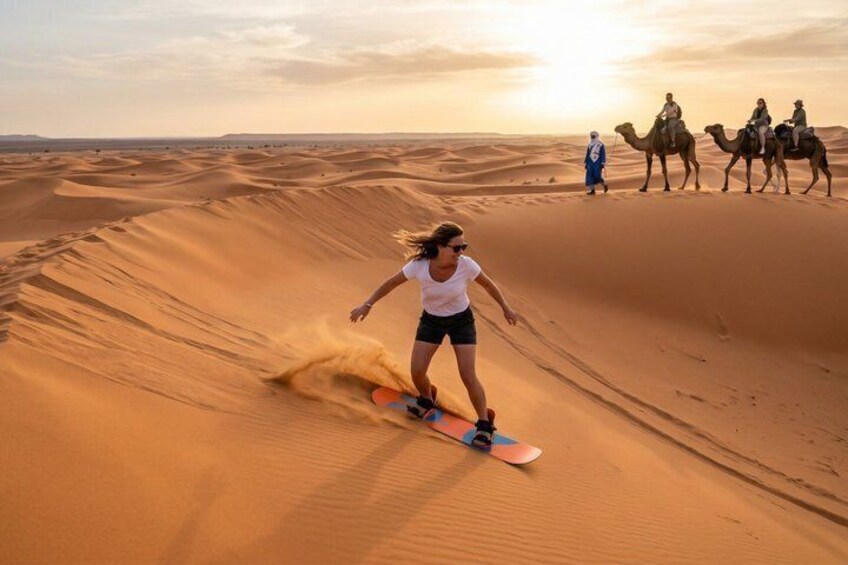Sandboarding Guided Experience: Enjoy an exciting guided sandboarding experience in the spectacular Timlalin Sand Dunes, near Agadir and Taghazout.