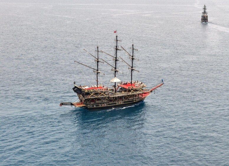 One of the most popular boat tours in Alanya, the Titanic Boat Tour promises a fun-filled day at sea! In the morning, you’ll be picked up from your hotel in a comfortable vehicle and transferred to the Alanya harbor. From there, you’ll set sail on the massive Titanic-Pirate boat for a relaxing cruise on the turquoise waters of the Mediterranean.