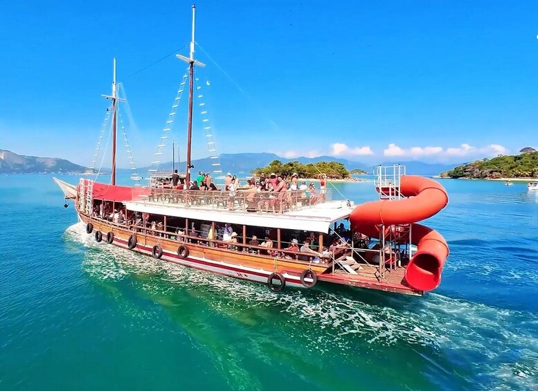 Throughout the tour, your professional and attentive crew ensures a safe and enjoyable experience. Though the route follows a set itinerary, ample time is given at each stop for swimming, exploring, or simply relaxing. Sharing this journey with other travelers also enriches the experience, offering opportunities to connect and share the wonders of Angra dos Reis.