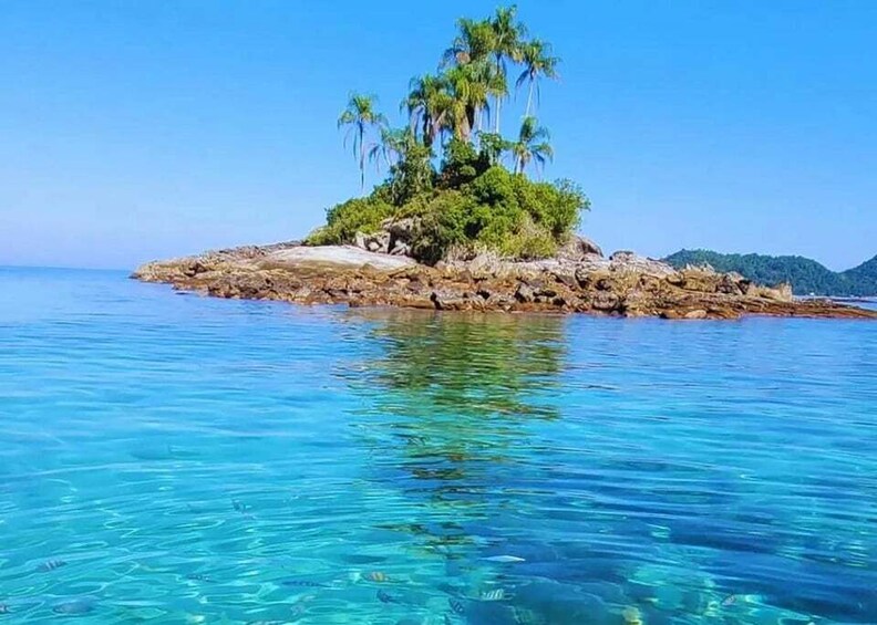The first highlight of your tour is the Ilhas Botinas, a pair of small islands famous for their crystal-clear waters and rich underwater life. Known as Angra dos Reis’ “natural aquarium,” this spot is ideal for swimming and snorkeling amid vibrant schools of fish and colorful coral reefs. Whether you dive in for a closer look or simply float on the surface soaking up the sun, Botinas offers an unforgettable encounter with nature’s underwater wonders.