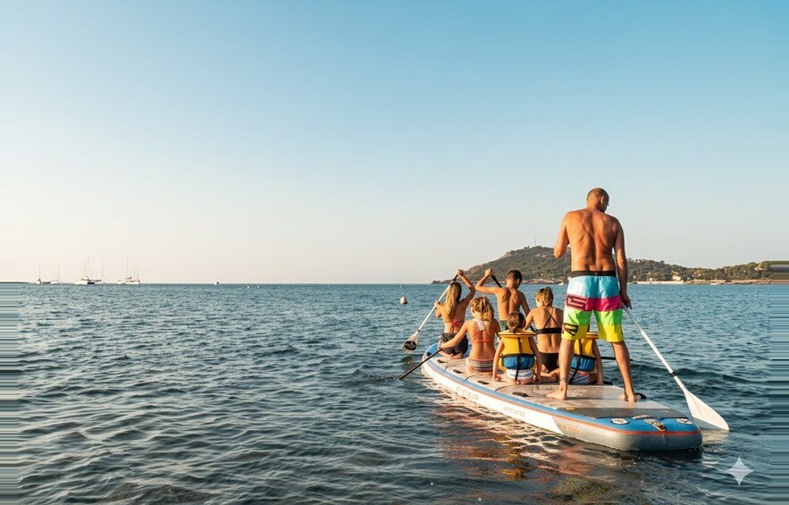 Enjoy an extraordinary aquatic experience in Cap d'Antibes by renting a giant paddleboard that can accommodate up to 8 people. Between turquoise waters, golden rocks, and a surprisingly rich seabed, it's the perfect setting to share an unforgettable moment with family or friends.