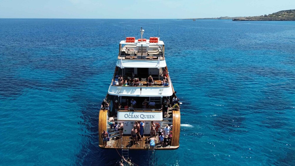 With professional crew, full safety standards, and first-class service throughout, Ocean Queen delivers a well-balanced experience combining sightseeing, swimming, comfort, and atmosphere making it one of the most enjoyable ways to explore Ayia Napa from the sea.