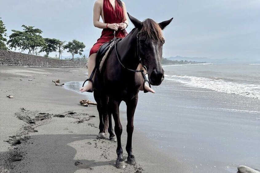 Bali Horse Riding Trot & Canter Saba Beach with Local Temple