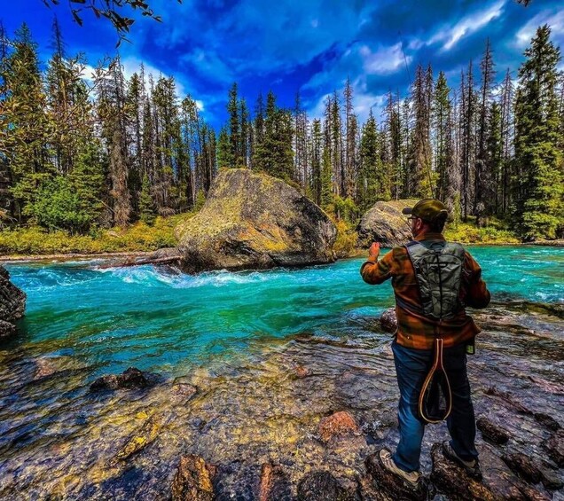 The adventure continues with a visit to the powerful Bow Falls, a dramatic waterfall where the Bow River tumbles over a wide cascade, creating a natural spectacle. Just a short drive away is Surprise Corner Viewpoint, a must-see vantage point where the Fairmont Banff Springs Hotel is framed by the rugged peaks of the Rockies and the flowing Bow River below—one of the most iconic photo spots in Banff.