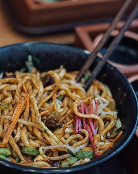 Venture into the hidden hutongs west of Qianmen Street to begin your flavor exploration. Depending on the day, you may sample classics such as Baodu (Quick-boiled Tripe), Luzhu Huoshao (Pork Offal Stew), Douzhi (Fermented Mung Bean Juice) with Jiaoquan (Crispy Fritters), or authentic Zhajiangmian (Noodles with Fried Sauce). At each stop, your guide will explain the history and the “right way” to eat it.