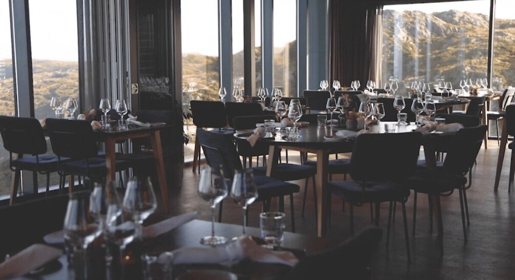 Indoors, Ulriken Café serves hot and cold Norwegian dishes, while Skyskraperen Restaurant offers a refined 3-course lunch and 5-course dinner experience.
