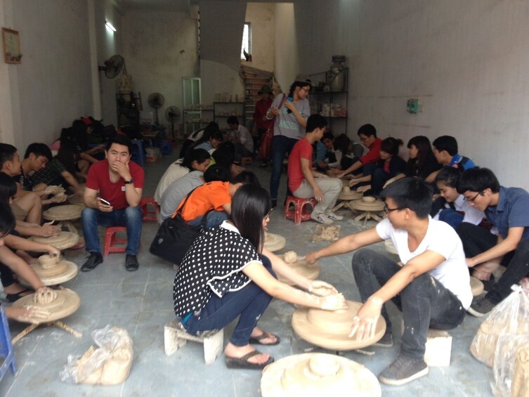 Biking to Bat Trang ceramic village on the quiet road between local agriculture villages and red river (10 km), packing your bike, visit ceramic factory, ceramic market, learn how to make a ceramic and make yourself a souvenir product.