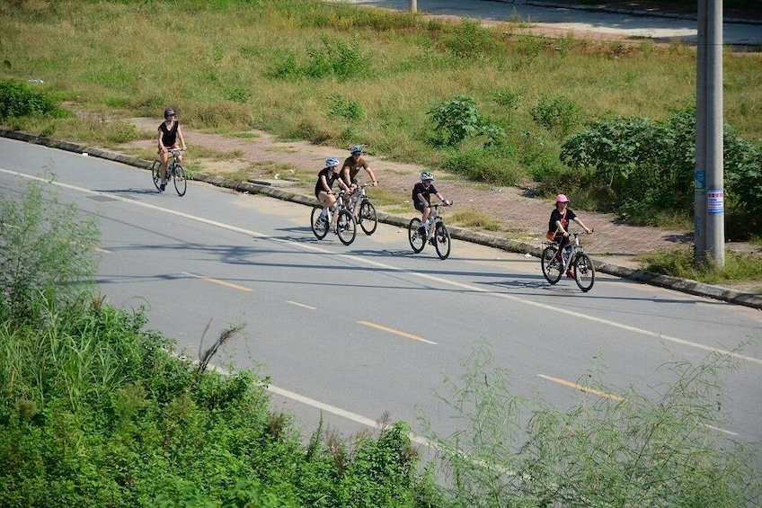Our guide welcome you and start biking out of Hanoi, we get on Eiffel bridge, was built in 1899 by the French architect Gustave Eiffel. Before Vietnam's independence in 1954, it was called Doumer Bridge, named after Paul Doumer. Proudly spanning the red river for one hundred years and having withstood several attacks in times of war. Eiffel bridge has been a witness of the bravery of Vietnamese people and deserves to be a symbol of Hanoi in the present era of peace and integration. We will truly enjoy cycling along Eiffel bridge and looking down at the activities of the locals under the bridge.