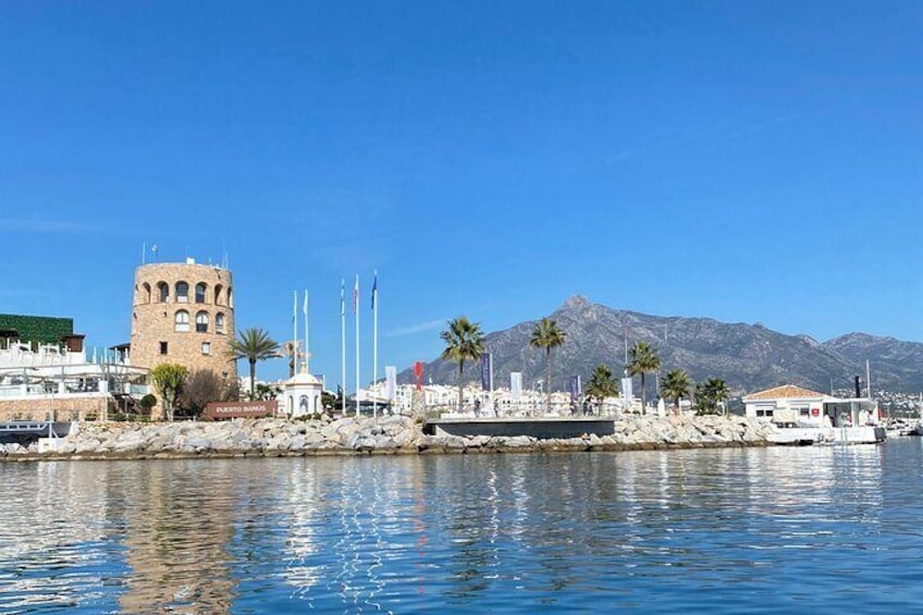 Marbella Sunset boat gives a unique experience being your own captain you can navigate the beaches of Puerto Banus, Marbella with high possibilities to see dolphins. You can snorkel. Listen to music thanks to its bluetooth sound system or just relax in the sun. You can also stop to take pictures with the famous mountain called La Concha, you can see the famous golden mile of the Costa del Sol.