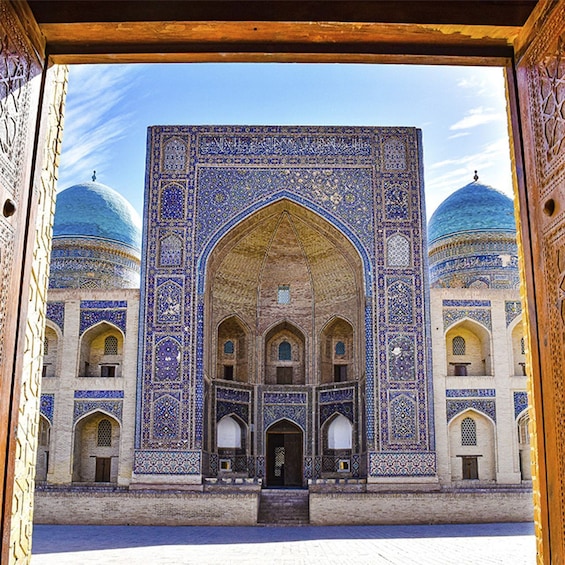 Start your walking sightseeing tour in Bukhara. Visit Lyabi-Khauz Complex (a lively square with a pool, old madrasahs, and shady trees, a favorite meeting spot), Magoki-Attori Mosque (one of Bukhara’s oldest mosques, partly underground, with pre-Islamic layers of history), Chor-Minor Madrasah (a small madrasa with four unique turquoise-domed towers, very photogenic), Trade domes (historic covered bazaars where silk, jewelry, and handicrafts were traded for centuries), Kalyan Minaret (a 47 m tower from the 12th century, spared by Genghis Khan, symbol of Bukhara), Kalyan Mosque (huge mosque with a vast courtyard, able to hold up to 10,000 worshippers), and Miri-Arab Madrasah (a still-functioning Islamic school, famous for its grand blue-tiled façade), Ulugbek and Abdulazizkhan madrasahs (side by side: Ulugbek’s simple elegance and Abdulazizkhan’s ornate design), Ark Fortress (former residence of Bukhara’s emirs, with royal courts, halls, and museums inside), and Bolo-Khauz Mosque (a mosque with carved wooden columns reflected in a pool, opposite the Ark). End of the tour.
