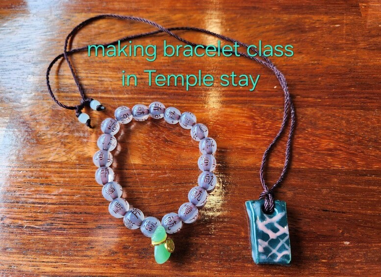 1 day temple stay (Tea ceremony in Temple + Making wishing bracelets at the temple + Buddhist cuisine as lunch) + Hanbok experience (All are included)