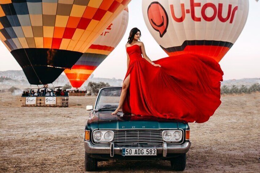 Classic Car Shooting: We are taking photos with hot air balloons at sunrise in Cappadocia with the classic vehicle we mutually agreed on.
