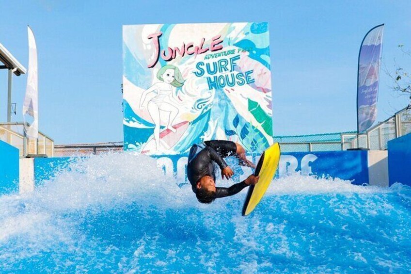 Blast into an action-packed adventure at Surf House Plus Chiang Mai Jungle Adventure Park, the only surf park in Northern Thailand. Start your journey by arriving at the lively jungle park, then complete registration and a safety briefing with professional surf trainers. Jump into the excitement as you ride powerful, nonstop artificial waves in a safe, controlled environment using clean RO-filtered water. With expert instructors guiding you throughout the session, beginners and experienced surfers can enjoy every wave with confidence. After surfing, soak up the jungle atmosphere and relax at nearby cafés or resort-style facilities (extra cost). This thrilling experience is perfect for families, couples, solo travelers, and groups looking for a fun and unforgettable Chiang Mai adventure.