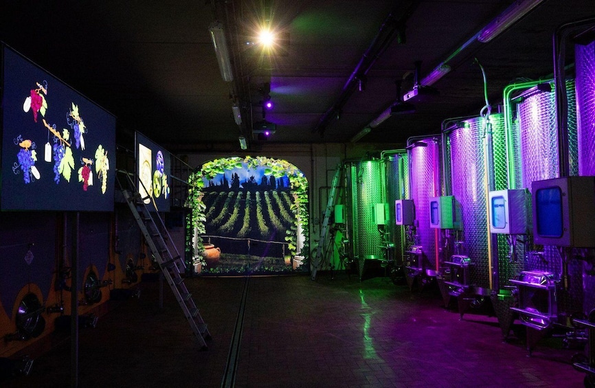 Begin your tour with a walk through lush vineyards, providing insights into the meticulous farming practices that cultivate exceptional grapes. Inside the cellar, explore the art of winemaking and aging techniques, guided by engaging audiovisual immersive experience that combine video mapping and spatialized sound. Animated characters representing historical figures such as Dante, Francesco Redi and Pellegrino Artusi bring to life the rich heritage of wine culture, creating a captivating 360-degree immersive experience.