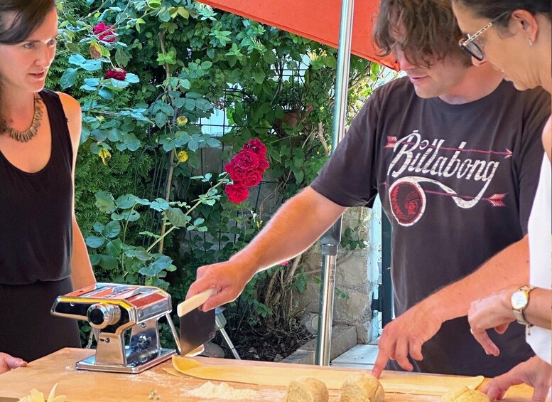 Next, we roll up our sleeves for some pasta-making action. You’ll get hands-on with a manual pasta machine, creating your own noodles from scratch! And of course, the famous Tiramisù della Nonna is on the menu—made with farm-fresh eggs, Swiss chocolate, and a whole lot of love.