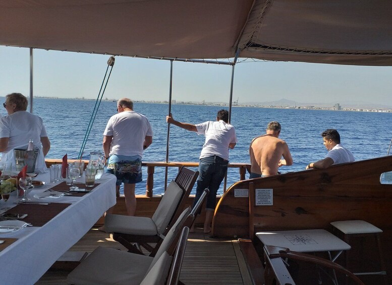 The Panormitis yacht is a traditional, hand-crafted wooden boat, ideal for private charter in Larnaca. The yacht is equipped with all modern conveniences and boasts an elegant, stylish interior. There are 6 beautifully furnished en-suite cabins with air-conditioning and plenty of storage for all your luggage.