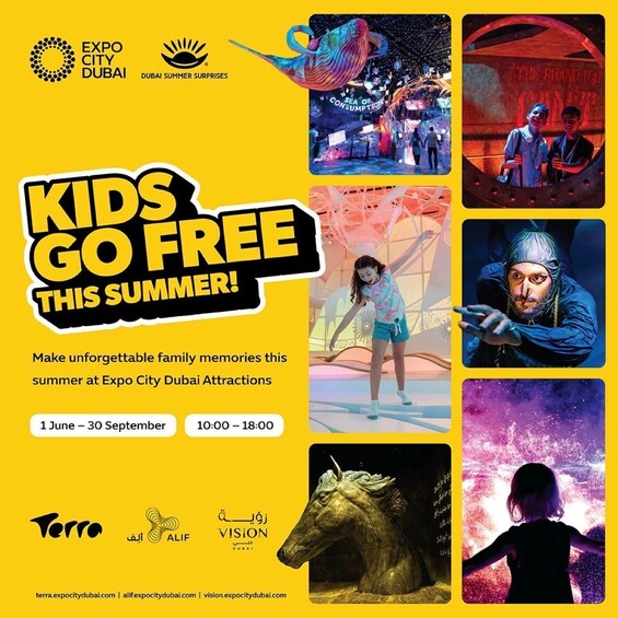 Get the most out of your visit to Expo City Dubai with an attractions pass. Explore Terra, Alif, and Vision, and learn about the impact of humanity's choices on the environment, the history of mobility, and the transformation of Dubai into a modern metropolis.
