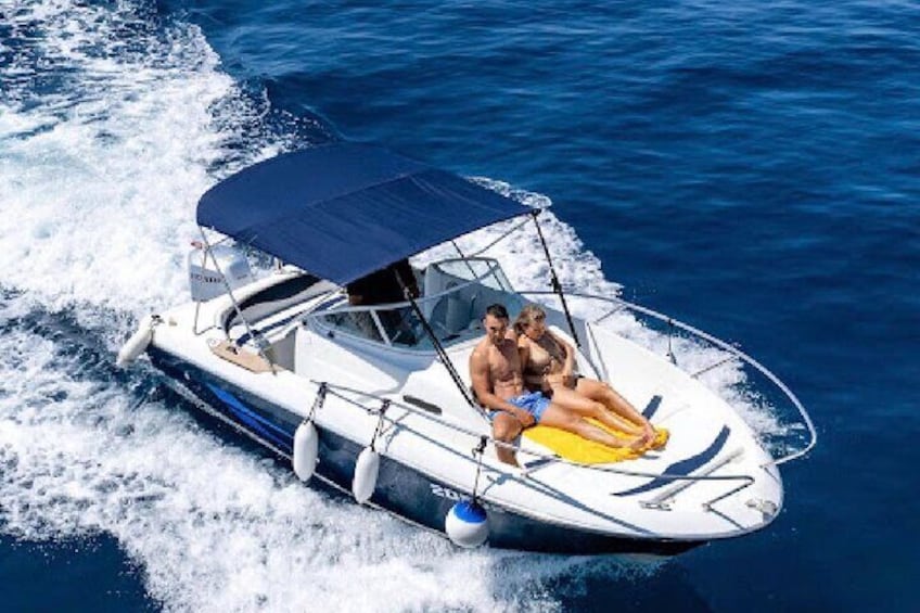 SUNSET - GOLDEN HOUR TOUR: Passing by Old Town, Porporela, Banje Beach, and the whole coast around Old Town. We are going to anchor in front of the Old Town main harbor and near the island Lokrum. From there you are going to enjoy the moment, mesmerizing views, watch the sunset, enjoy music on board, dance, drink your drinks, have a sunset and night swim around the boat on the open sea in safe conditions with lights in the sea from the speedboat making a nice all-around ambient and seeing a lot of small fishes and squids on the surface around the light and the boat. Opportunity to take the best and most unforgettable photos with the GoPro or Instax camera insured by us free.