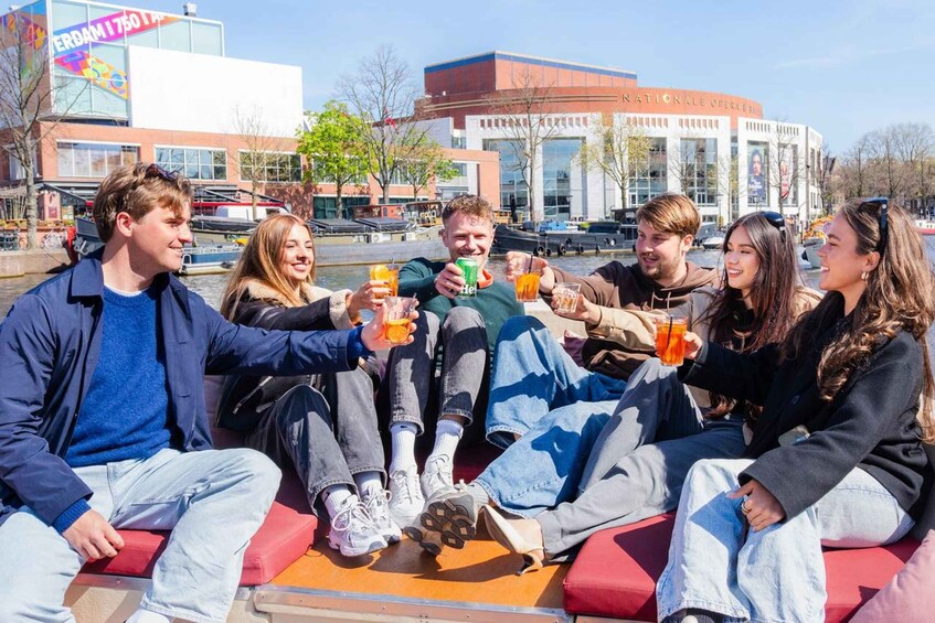 Relax and get comfy on our well-equipped and 100% electric boat, drinks included! We offer a selection of alcoholic and non-alcoholic drinks. drinks, ranging from cocktails, wine and prosecco to beer, and softdrinks.