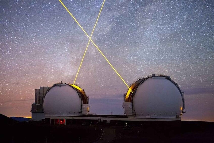 Embark on a 6‑hour, small‑group adventure from Hilo that starts with a stop at lush Rainbow Falls, where mist‑borne ānuenue (the Hawaiian rainbow) may shimmer through the spray—then rises nearly 9,000 ft to the Onizuka Visitor Information Station for educational astronomy displays and acclimatization at approximately 9,300 ft elevation. From there, continue in air‑conditioned transport to Hawaii’s highest point: Mauna Kea summit at 13,796 ft, offering pristine panoramic views above the clouds and a close‑up of global telescope domes.