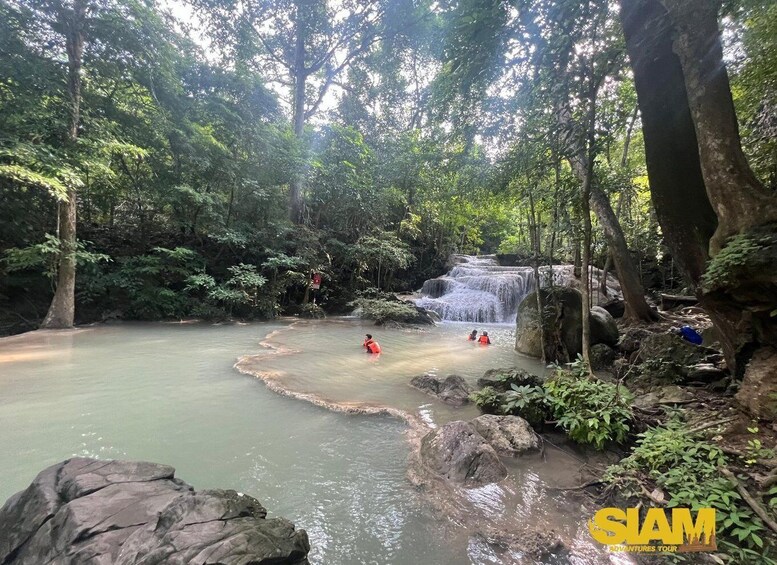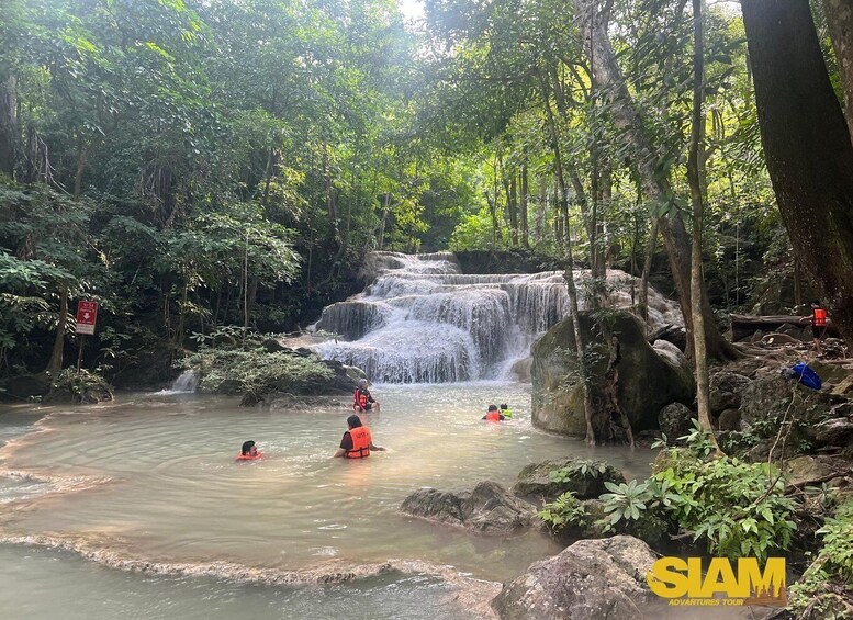You’ll join the tour in the morning in central Bangkok and enjoy a scenic bus ride to Erawan Waterfall National Park, while your guide tells stories of the region.