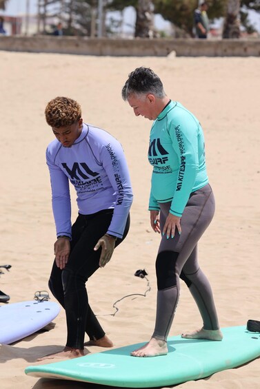 Start with a personalized briefing on the sand, assessing your level and learning techniques. Beginners learn paddling, pop-ups, positioning, and balance, while intermediate or advanced surfers focus on turns, wave reading, speed, and stance correction.