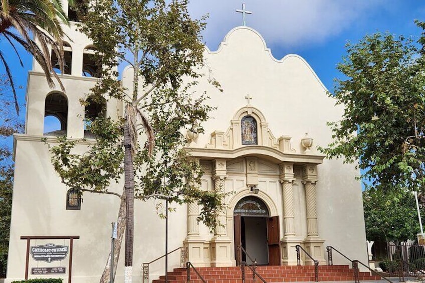 It was here in Old Town that Saint Junípero Serra celebrated his First Holy Mass in California on July 2, 1769, near this site of the present-day Immaculate Conception Church.