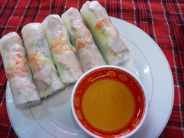 With your expert guide and chef describing flavors, ingredients, and techniques, prepare a fantastic meal with the produce from the market. You might make tam huu (crispy spring rolls), banh xeo (Vietnamese pancake), or grilled fish, fresh from the sea. Other typical dishes like green papaya salad and Vietnamese hot pot might also be on the menu. When everything's ready, sit down with your group and enjoy your meal together.