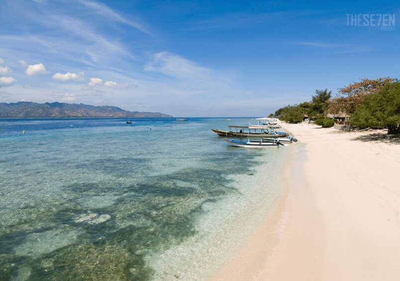 Start with an early pick-up from your Bali hotel and transfer to the harbor. Board a shared fast boat across the Lombok Strait, taking in views of Bali’s coastline and Mount Agung. On arrival at Gili Trawangan, you’ll be welcomed with a traditional cidomo (horse cart) ride to your beachfront hotel.