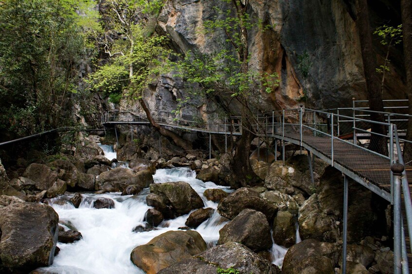 Sapadere Canyon: A wonder of nature, Sapadere Canyon is located within the territorial border of Alanya, a sub-district of Antalya. It is in the Northeast of the region. Sapadere canyon is 360 m long, and nearly 400 m high. It is almost 3 km away from Sapadere Village. This miraculous part of nature will take your breath away. You will never forget being one with nature, bright summer sun above your head, among the emerald-green leaves of the trees. You will be amazed by the rapidly gushing water over series of rock steps, rare plants and different species of animals and birds when walking through this natural habitat.
