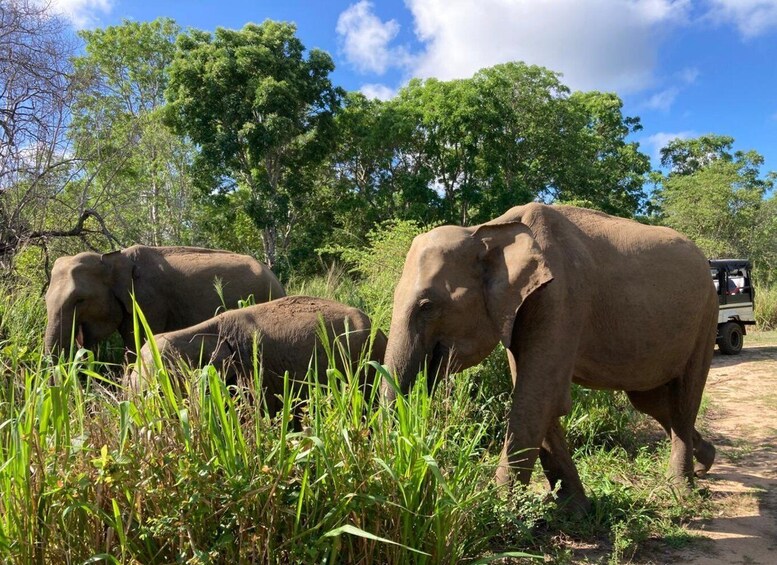 Choose an optional jeep safari at Minneriya National Park, Kaudulla National Park, or Hurulu Eco Park. The safari park is selected based on weather conditions and elephant movements to ensure the best wildlife sightings.