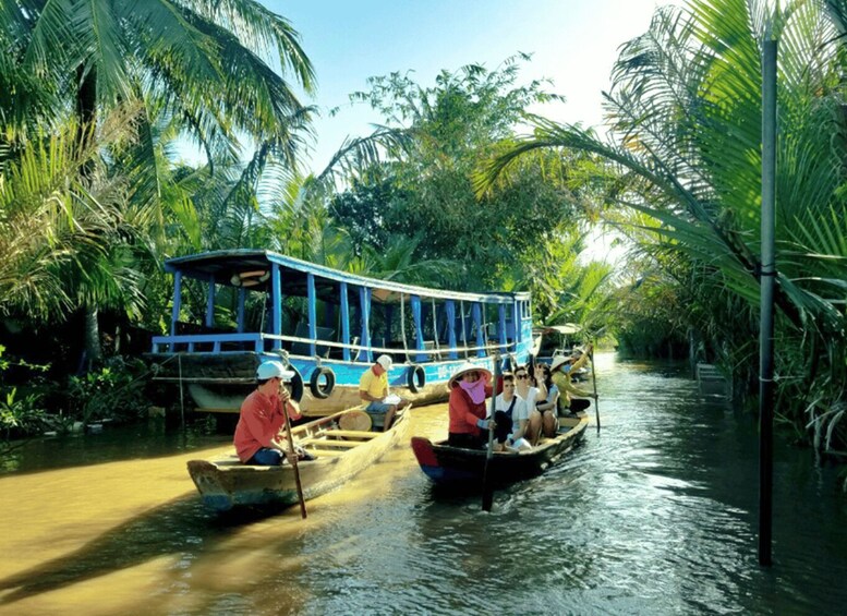 7 :00 am: A smooth one-and-a-half-hour bus ride passing the green rice fields, leads you to the beautiful rural Mỹ Tho city .