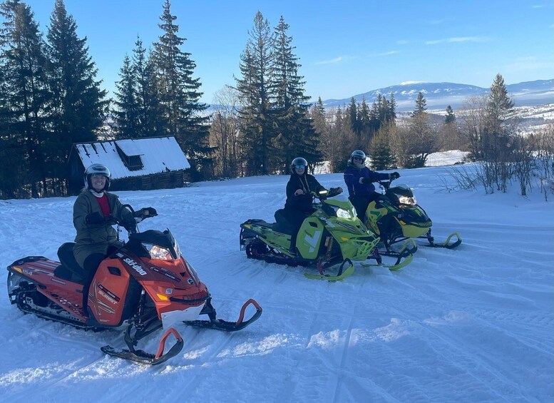 Enjoy the scenery of Zakopane area and look at the Tatra mountains from a different angle in the company of one of our guides on snowmobiles (snowmobile renting is excluded in the price). At the start of our tour, we will stop at Chochołów Unesco World Heritage Site (wooden traditional cottage village). You will have an opportunity to explore the sculptor's hut and see how the highlanders pass their day.