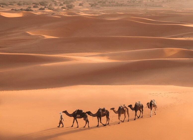 On the final day, marvel at the beautiful desert sunrise on a camel ride before returning to Marrakech for drop-off at your hotel or riad.