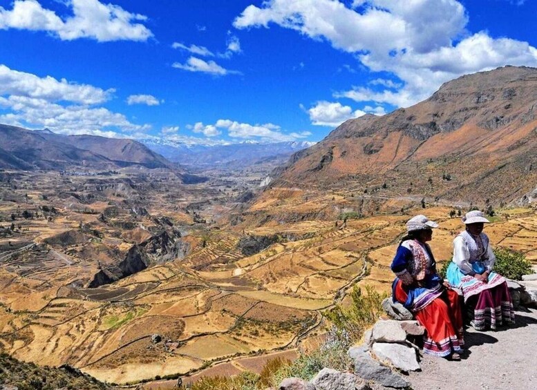 9:30 a.m. After visiting the canyon, we'll stop at other natural viewpoints and in the traditional village of Maca, where you can find local products and try on their traditional clothing.