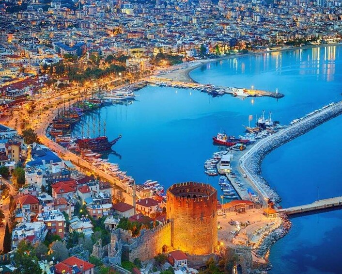 Begin your full-day adventure with a convenient hotel pickup from Side and head toward the coastal city of Alanya. Your first stop is the historic Alanya Castle, perched high above the city, where you'll enjoy sweeping panoramic views of the Mediterranean Sea and surrounding landscapes. Learn about the castle’s strategic significance and cultural heritage as you explore its ancient walls.