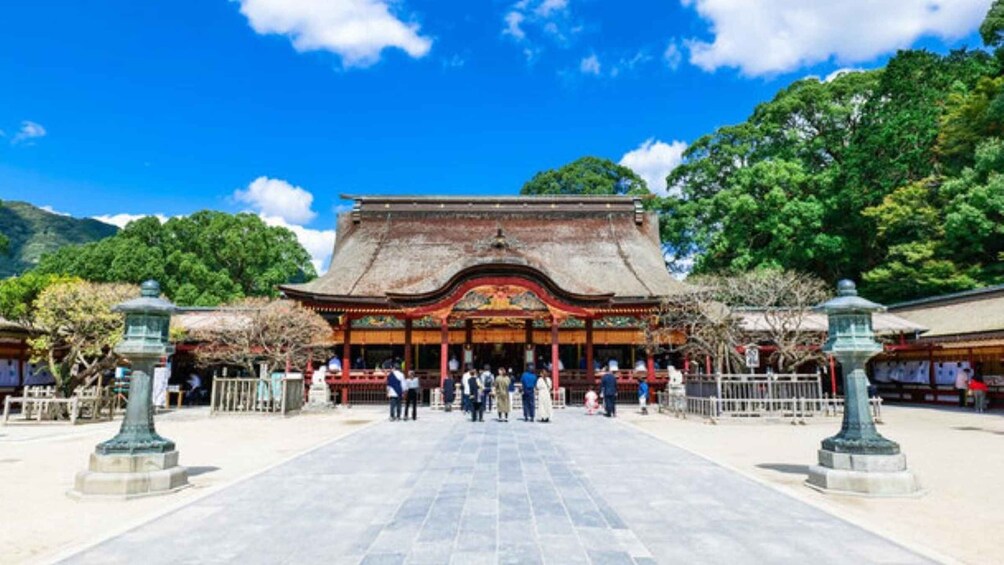 Begin your journey at the Dazaifu City Tourist Information Center, where your guide will introduce the day’s itinerary. From there, stroll along the picturesque Dazaifu Omotesando, a lively street lined with traditional shops. As you approach the shrine, stop at the iconic San-no-Torii (third gate) for a memorable photo with the Sacred Cow statue, symbolizing wisdom and success.
