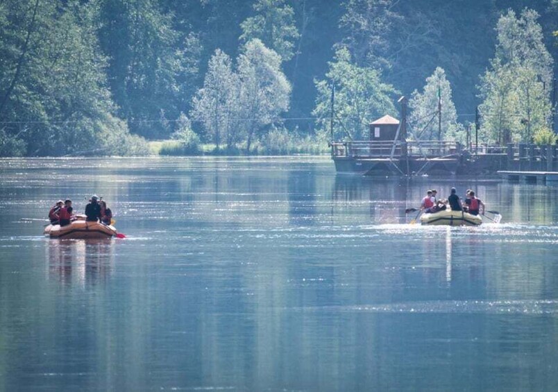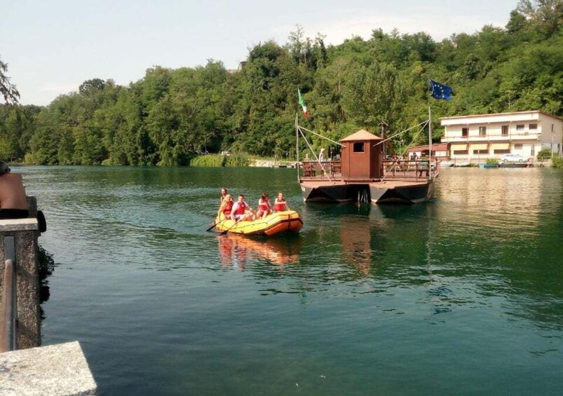 You will also observe the famous Leonardo da Vinci Ferry at work in Imbersago, which crosses the river without the aid of engines. And to make the descent more exciting, there will be breaks for diving and fun water games with the rafts!
