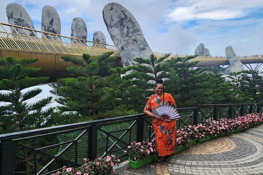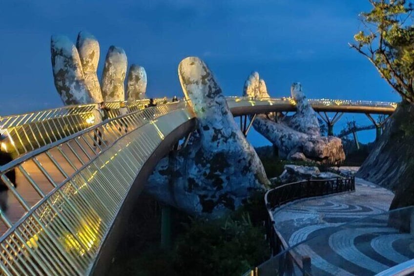 14:00/09:00 Pu at the hotel in Hoian/Danang - should start at 14:00 to avoid the crowds and long queue & to enjoy better. ♥ 15:00 Arrive at the park of Ba Na Hills & buy Entrance tickets there ♥ 15:15 Enjoy Cable car ride in (15' ) ♥ 15:45 Walk slowly through Golden hand Bridge and take amazing photos. ♥ 16:30 Chill out at Eden Sky garden ♥ 16:45 View Champagne Glass stairs ♥ 17:00 Visit Garden of Fairy tales ♥ 17:30 Go sightseeing at JARDIN D'AMOUR ( lovely flower garden ) and Bridge of love ♥ 17:40 Wonder around French Village ♥ 17:50 Visit Mountain Man ♥ 18:00 Have dinner at Ba na hills restaurant ♥ 19:00 Leave Ba na Hills. ♥ 20:30 End of trip