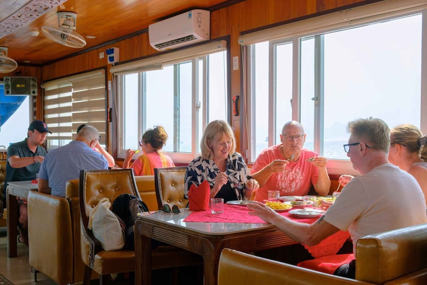 Discover the magnificent Surprising Cave with its vast chambers and stunning formations, glide through the tranquil lagoon of Luon Cave by kayak or bamboo boat, and visit Titov Island for panoramic views or a refreshing swim. Along the way, enjoy a freshly prepared Vietnamese seafood lunch served onboard.