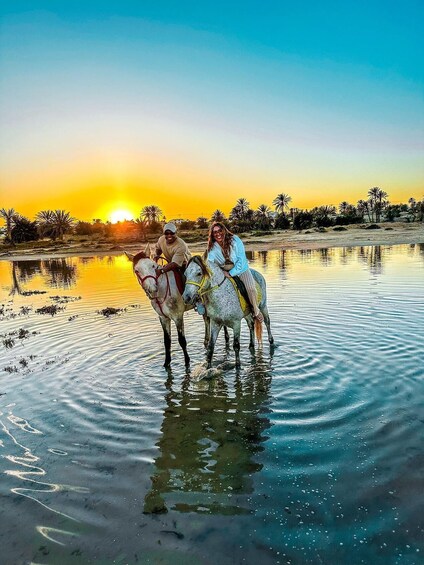 Horseback riding at sunset on the peaceful beaches of Djerba.