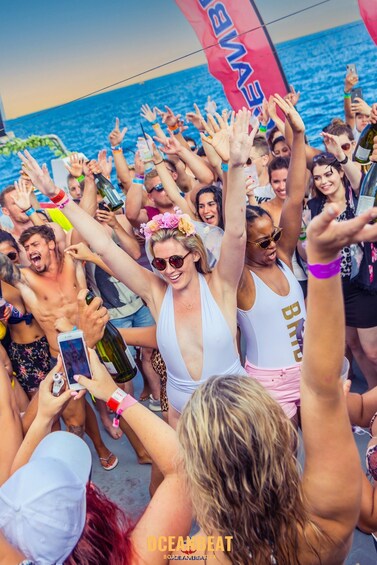 The Oceanbeat Sunset Boat Festival is the only 4-hour floating VIP sunset festival in Ibiza – an experience unlike any other. This exclusive event is hosted solely by Ocean Beat Ibiza, the leading brand for unforgettable boat experiences on the island.