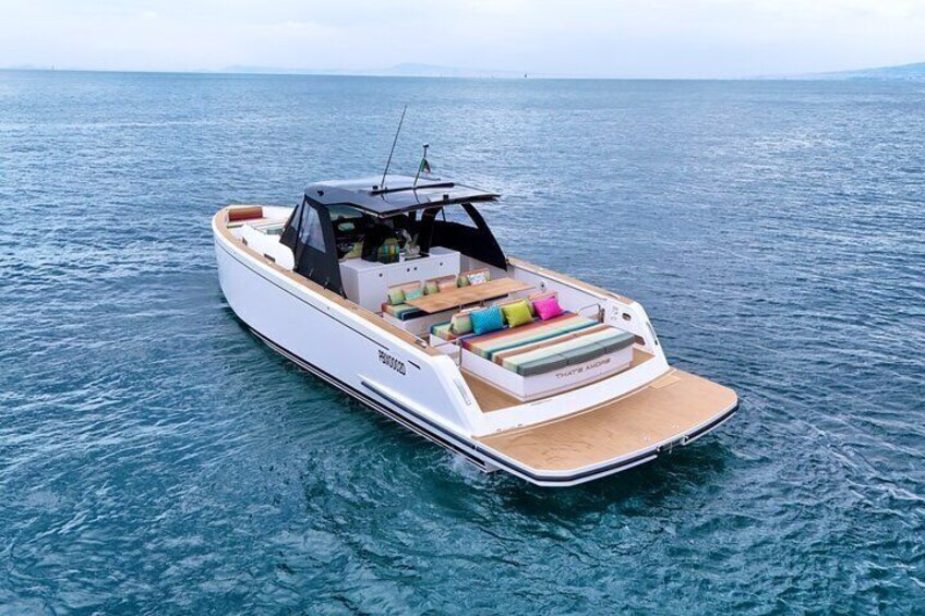 Pardo 43 That's Amore: A new 2024 model, 14 meters long. It is the most glamorous and high-performing boat in our fleet.