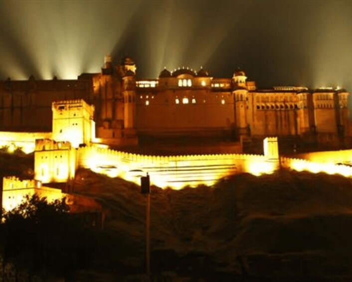 This option includes a private car with a driver for hotel pickup and drop-off, an Amer Fort Light & Sound Show admission ticket.