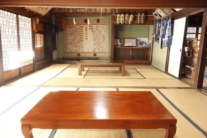 Visit the most sacred site for Mount Fuji, the Kitaguchi Hongu Fuji Sengen Shrine, where you’ll receive a blessing. Then, head to a 400-year-old Oshi inn, where you’ll experience traditional worship, sutra copying, and Goshuin printing. Enjoy a meal prepared with local seasonal ingredients and preserved foods, reflecting the culinary traditions of the Oshi inns.The place to have lunch is Kikuyabo.